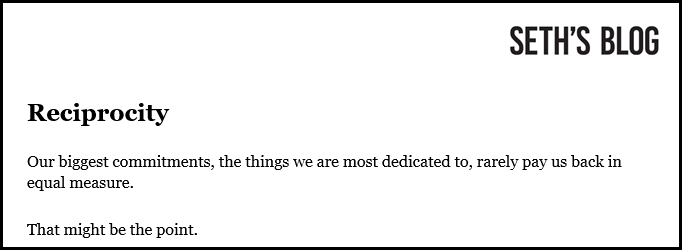 That’s Seth’s blog post from 10/2. In its entirety. (I should be learning his “economy of words” lessons too!)