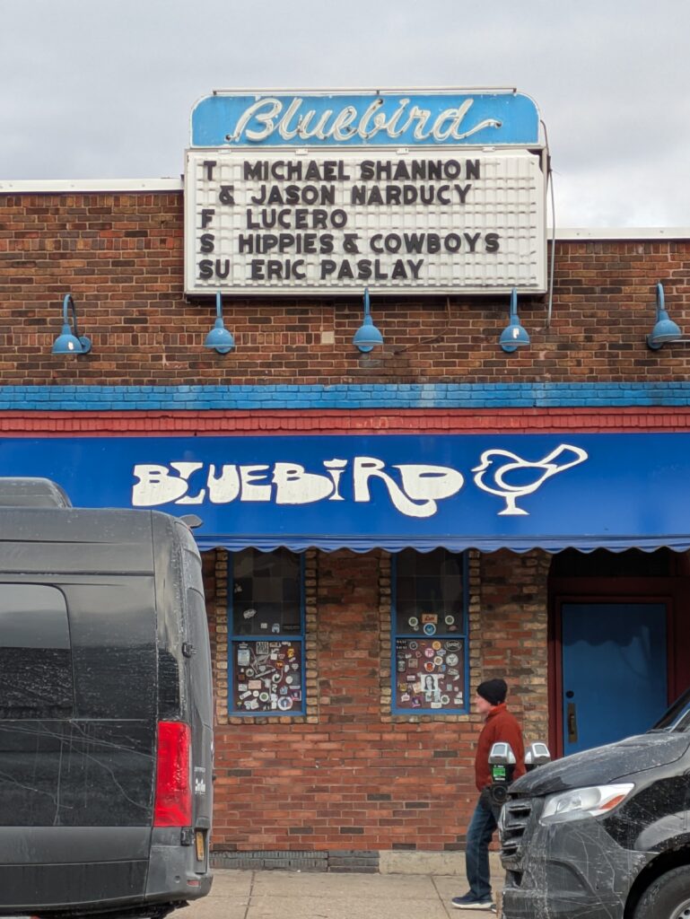 The tour was selling out 1,000+ seat venues. I went to the final show of the tour, at the 288-capacity Bluebird Nightclub in Bloomington, Indiana. (Lifes Rich Pageant was recorded in that town 40 years ago.)