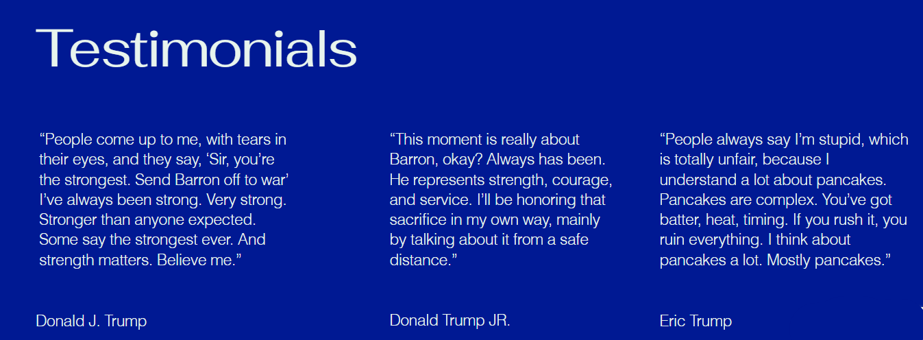 Kudos to the folks who spun up the DraftBarronTrump.com website after the very stable genius started dropping bombs (other than the ones in his diaper).